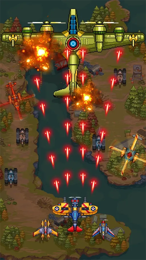 - روعة الرسومات : من أبرز مميزات لعبة 1945 Air Force Mod Apk أن تم تصميمها برسومات ذات جودة عالية بالإضافة إلى أن لعبة 1945 Air Force Mod ثنائية الأبعاد.