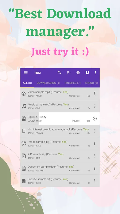 سهولة وسرعة تنزيل الملفات بعد تحميل برنامج 1DM+ مهكر Mod اخر اصدار للاندرويد