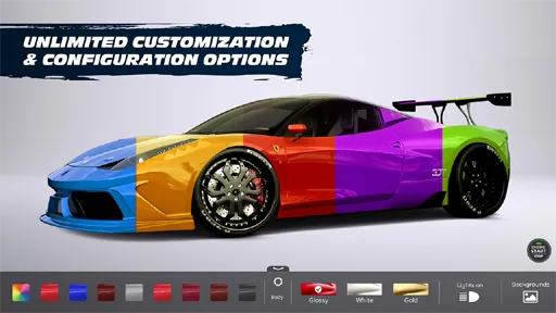 لأن لعبة 3D Tuning Car Game مهكرة للاندرويد قائمة على محاكاة تخصيص السيارات لذلك قام المطور بتوفير خيارات خاصة بتخصيص العناصر التابعة للسيارة بصورة دقيقة, حيث يمكن تحديد الشكل الخاص بالإطارات والحجم الخاص بها بالإضافة أيضا لضبط مدى تباعد العجلة والميول الخاص بها, كما يمكن اختيار اللون الخاص بالسيارة وضبط التأثيرات البصرية لها لكي تظهر بالصورة التي تُعبر عن شخصيتك في لعبة تخصيصات سيارات ثلاثية الأبعاد 3D Tuning Car Simulator.