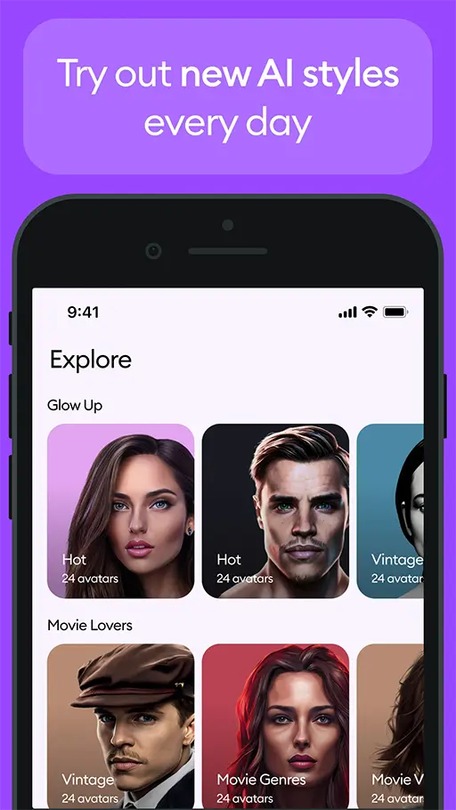 يقدم برنامج تحويل الصور بالذكاء الاصطناعي Dawn Ai قوالب جاهزة للاستخدام حيث يمكنك اختيار القالب او التصميم الذي يعجبك وادراج الصور الخاصة بك في التطبيق وبدا المعالجة وسوف تجد الصور الخاصة بك تمت معالجتها بطريقة رائعة وملامح وجهك تظهر بصورة واضحة في التصميم الذي قمت بتحديده, حجم التطبيق لا يتخطى الـ 53 ميجا بايت وهذا حجم متوسط بلس بالكبير ومقارنة بالتطبيقات الأخرى في القائمة سهو حجم مناسب بالنسبة لخدماته.