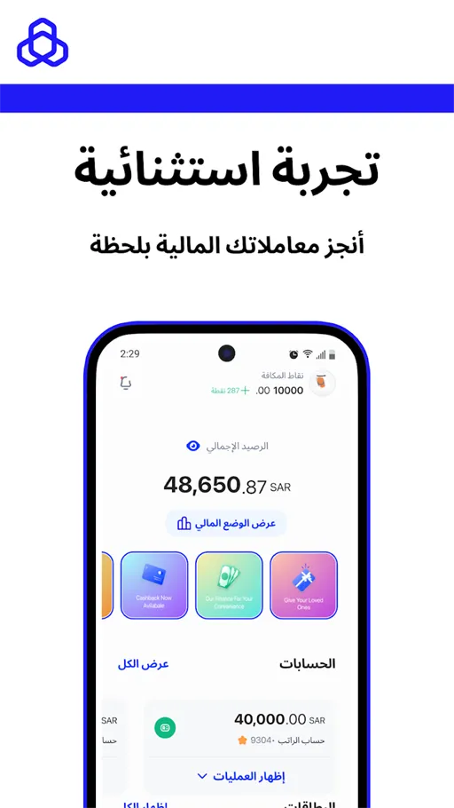 إدارة الحسابات والبطاقات الإئتمانية في برنامج الراجحي موبايل AlRajhi Bank Apk