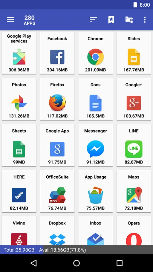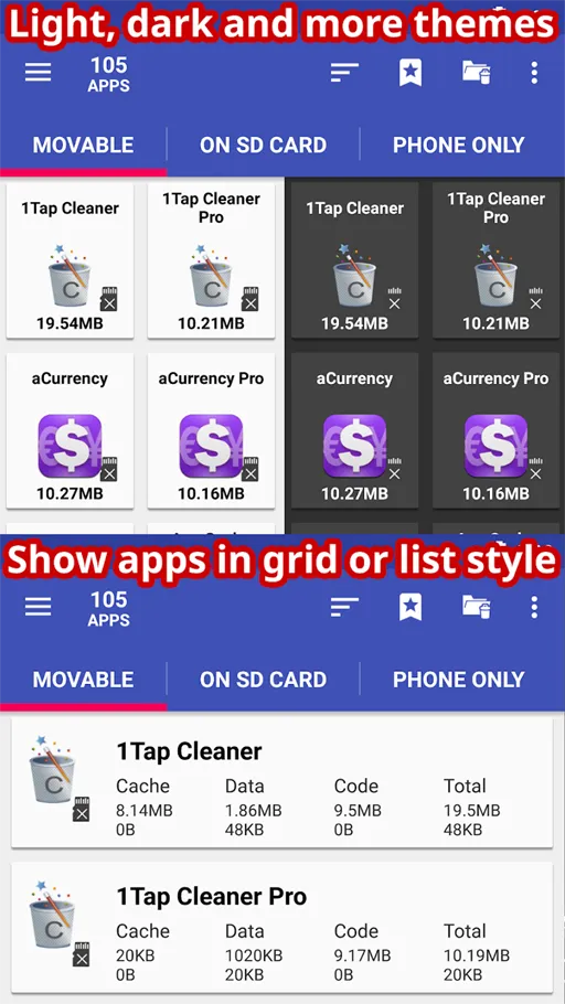 1. طريقة العرض : بعد تحميل برنامج AppMgr Pro III App مهكر تستطيع تحديد الطريقة التي يتم عرض بها التطبيقات داخل مكتبة برنامج AppMgr Pro III مهكر اخر اصدار حيث يمكنك تحديد الطريقة الشبكية أو إختيار طريقة العرض في وضع القائمة.