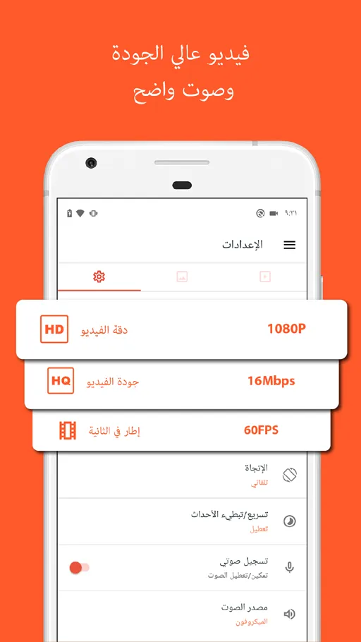 البث المباشر وتنوع الجودات وإختيار الصوت في تطبيق تسجيل الشاشة فيديو مهكر
