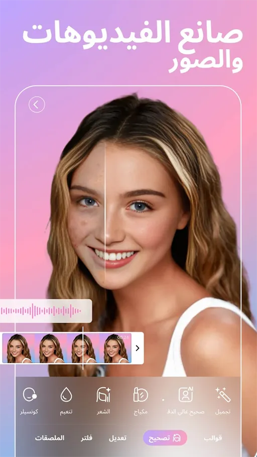 - أدوات التجميل : يوفر تحميل برنامج BeautyPlus مهكر مجموعة واسعة من الأدوات المخصصة لتحسين وتجميل الصور من حيث حجم الوجه ولون البشرة وإزالة العيوب والبقع وتبييض الأسنان وتحسين المظهر العام, ستتفاجئ من كم الأدوات التي يوفرها تطبيق بيوتي بلس للاندرويد.