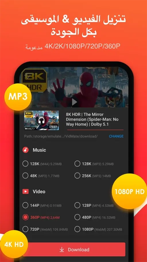 تنزيل برنامج فيد ميت Vidmate لـ تحميل الفيديو من أي موقع
