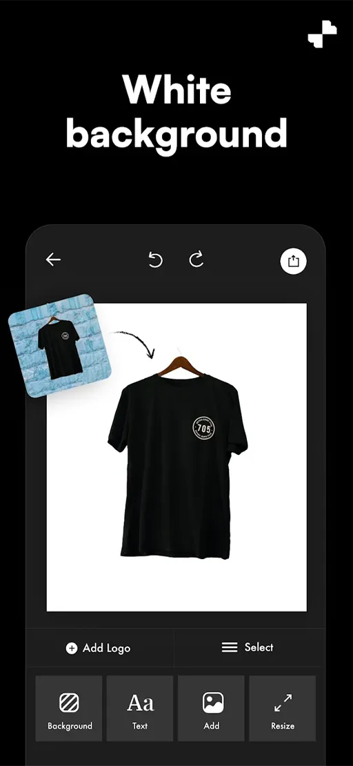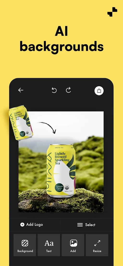 - إضافة الشعار : هذه الأداة تتمكن بواسطتها من استرداد شعار من قائمة الشعارات التي تم صناعتها بعد تنزيل تطبيق Blend Ai Photo Editor لكي تقوم بوضعها أسفل الصورة, أي تستطيع صناعة شعار خاص بك لكي تضعها على جميع مشروعاتك و تصميماتك بحيث يتمكن أي شخص من رؤية تصميماتك معرفة أنك الذي قمت بصناعته.