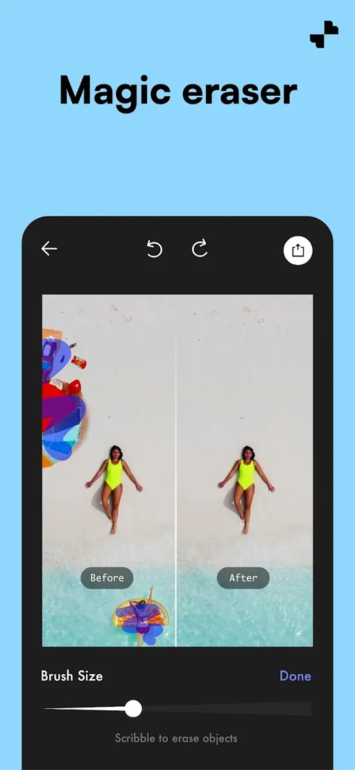 بالتالي تتمكن من صناعة الرسومات المميزة بسهولة, حيث تستطيع القيام بتحديد نوع الخلفية لكي يتم دمجها مع الصورة التي تقوم بتعديلها, تتوفر أيضا مجموعة من الأدوات التي يمكن استخدامها في التطبيق مثل أداة إزالة الأجسام وبالتالي يمكن الاستمتاع بهذه الأداة في إزالة الأجسام الغير مرغوب فيها من الصورة بإحترافية عالية حيث أنك تقوم بواسطة هذه الأداة بتحديد الجسم المراد باستخدام الفرشاة الخاصة بهذه الأداة وتطبيق Blend Photo Editor هو أفضل تطبيق يعمل باستخدام التقنيات التي يمتلكها على إزالة هذا الجسم بدقة عالية دون أن يعمل على تشويه الصورة.