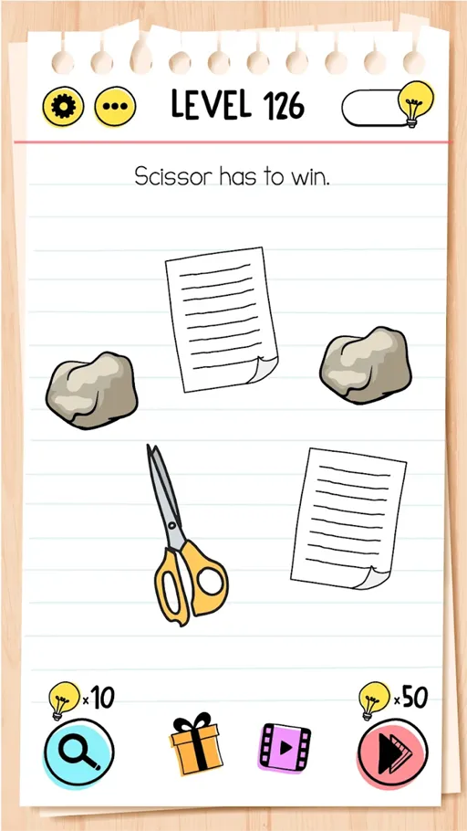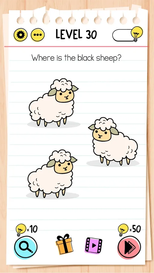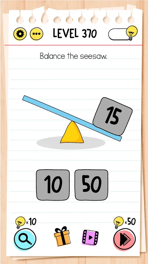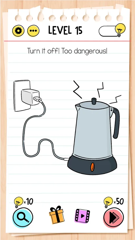 - زر عرض تلميح : الزر الأهم والأفضل ومن رأينا فـ هذه الوسيلة هي الأنسب لأي شخص خلال مواجهة مشكلة في فهم مستوى معين, زر التلميح يعرض معلومة تساعد الشخص في الوصول إلى حل اللغز ولكن في الوقت ذاته فـ التلميح لا يعرض الحل نفسه, أي أن التلميح المعروض بعد نقر الزر يٌقرب الشخص من الوصول إلى الحل بشكل أكبر ومع تحميل لعبة Brain puzzles مهكرة ستتمتع بعدد لا نهائي من التلميحات لأنها لن تكلف أي عملات إفتراضية كما هو الحال في النسخة الأصلية.