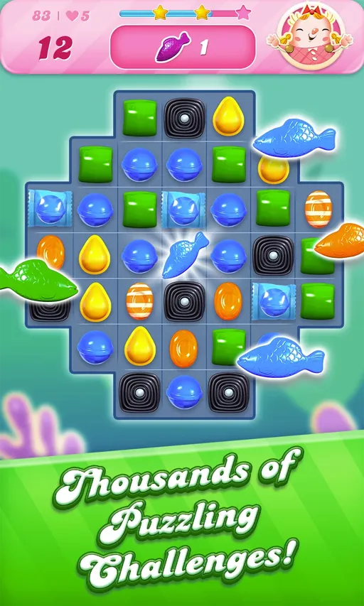- حلوى الأسماك : هي نوع خاص من الحلوى يأتي مع مستويات خاصة وعند تدميرها سوف تظهر مجموعة من الأسماك لتدمير بعض الحلوى العشوائية من الشاشة.