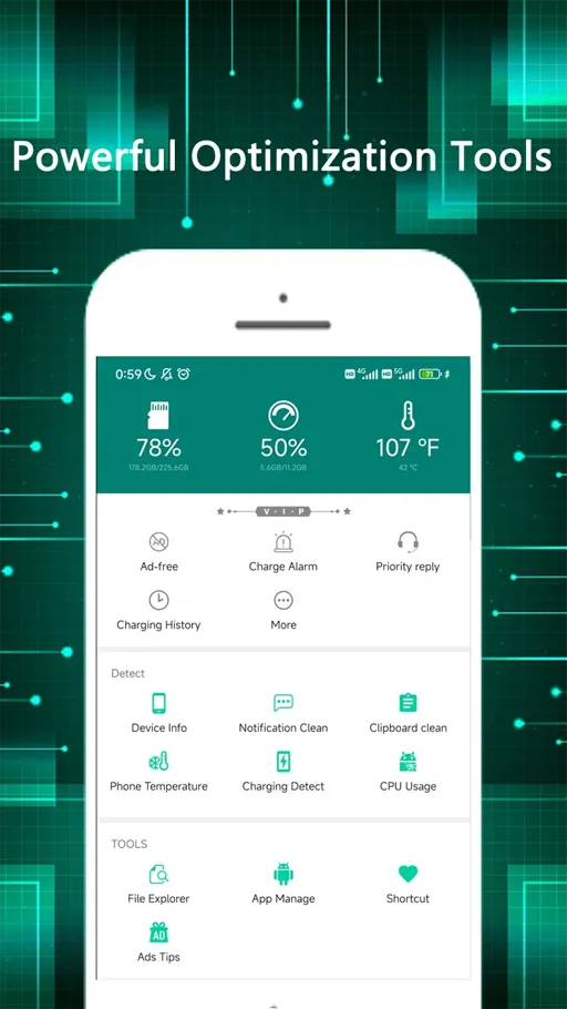 - تنظيف الهاتف : التطبيقات والملفات الموجود على الهاتف بشكل غير مرغوب فيه من الأسباب التي تستهلك البطارية بشكل سريع ولذلك فـ تطبيق Charging Master Pro مهكر هو تطبيق يوفر أداة أخرى رائعة خاصة بتنظيف الهاتف, أداة التنظيف تُساعد في تعزيز أداء الجهاز عن طريق إزالة الملفات المؤقتة والمكررة ومسح ذاكرة التخزين المؤقت بشكل سريع وفعّال.