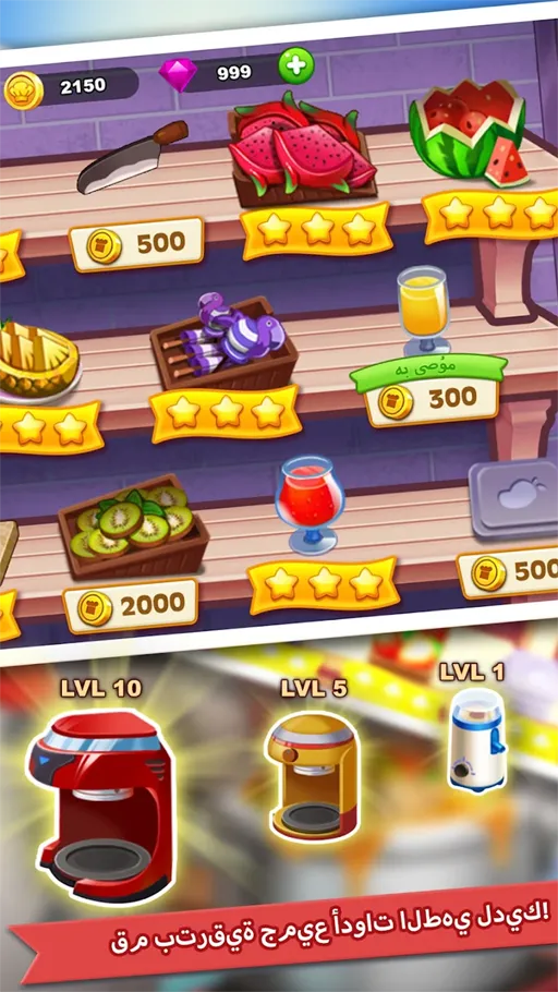 أيضا من الموارد التي يمكن ترقيتها هى العصير بالإضافة لماكينة هذا العصير التي كانت تعمل في البداية على إنتاج كوب واحد فقط من العصير لكن مع عمل الترقية لهذه الماكينة يمكن الاستمتاع بإنتاج ثلاث أكواب من العصير مما تتمكن أيضا من إرضاء الزبائن بصورة أكبر دون أن يغضب أحد ويترك المطعم, أيضا بعد تحميل لعبة Cooking Madness سوف تحصل على متجر تستطيع من خلاله شراء الكثير من المعدات الأخرى التي تستطيع استخدامها في الطهي, بالإضافة لإمكانية تحديد الصورة الخاصة بك داخل لعبة Cooking Madness Apk.