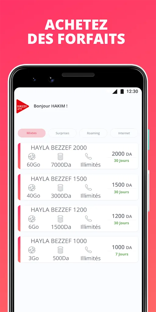 • الإنترنت والبيانات : سوف تتوفر لك إمكانية تفعيل وإدارة باقات البيانات الخاصة بالإنترنت, ويٌمكنك كذلك في “تطبيق جيزي اب مهكره Djezzy App” مراقبة استهلاك البيانات والإنترنت خلال الشهر أو المٌدة المحددة, مع وصول كامل إلى عروض وخصومات باقات البيانات الإنترنت.
