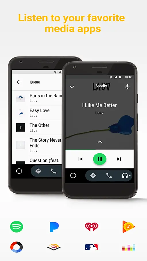 - وكذلك يمكنك الاستمتاع بالموسيقى أو البودكاست التي تتواجد على جهازك أو على تطبيقاتك من خلال اقترانها بـ تطبيق Android Auto Apk وبعدها يمكنك تشغيلها وضبطها كما ترغب.