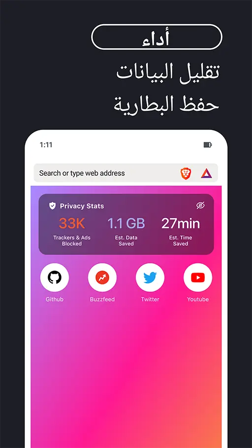 • الحفاظ على البطارية : بعد حظر الاعلانات والنوافذ المُنبثقه داخل المواقع هذا الأمر سيقوم بتوفير الكثير من الشحن والحفاظ على البطارية من الاستهلاك العالى اثناء تصفحك مواقع الانترنت.