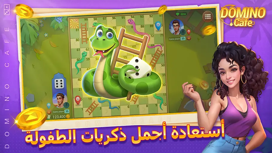 في الواجهة الرئيسية من لعبة الدومنه Domino Cafe مهكرة ستجد مجموعة أقسام في منتصف الشاشة وهذه الأقسام هي التي تقدم ألعاب أخرى بجانب لعبة الدومينو, توجد لعبة السلم والثعبان ويمكنك بمجرد النقر على هذا القسم فتح اللعبة ولعب السلم والثعبان والاستمتاع بها أيضًا. لكن بالطبع لا يتم فتح لعبة الدومينو Domino Cafe مهكرة هكذا بل يجب عليك أن تقوم بدفع مبلغ مالي من العملات التي حصلت عليها باللعبة لتتمكن من فتح هذا القسم, ( هٌنا نتحدث عن العٌملات الإفتراضية ) لأنه كما ذكرنا فاللعبة تٌعطيك تلك العملات عند الفوز.