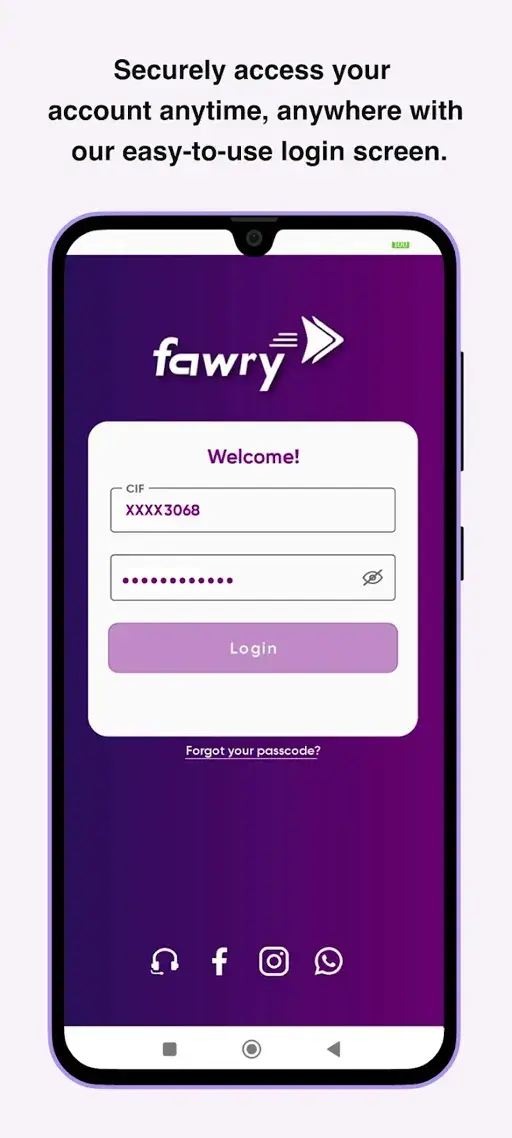 - بعد الانتهاء من إنشاء الحساب بشكل صحيح كما وضحنا عليك الرجوع إلى أيقونة ( تسجيل الدخول ) وذلك حتى تتمكن من القيام بعملية الدخول لحسابك واستخدامه بكُل سهولة وبساطة، والآن ستكون قادر على مراقبة رصيدك والتعرف على جميع الخدمات المُقدمة لك بداخل برنامج فوري بنك فيصل الإسلامي Fawry Sudan APK بعد التسجيل بغض النظر عن الخدمات التي وضحناها في السابق.