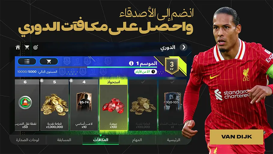 - الجوائز المستمرة : تقدم لعبة FIFA Mobile 2023 Mod Apk مهكرة برابط مباشر للمستخدمين الهدايا المجانية بصورة مستمرة مثل هذايا تسجيل الدخول اليومية, وكل المهمات الموجودة بعد إتمامها من قبل اللاعب يحصل منها على جوائز رائعة تصل احيانا الى لاعبين رائعين بدون مقابل, ومع التقدم في مسيرة المهمات والبطولات تزداد الجوائز قيمة واهمية.