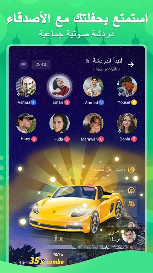 • الخيار الثاني من ناحية اليمين خاص باللعبة والذي يظهر به عددا هائلا من الألعاب التي تستطيع الاستمتاع بها مع أصدقائك بالتطبيق وتجد أيضا اللعبة الشهيرة والغنية عن التعريف لعبة (لودو)، وتجد في أسفل الصفحة شريط خاص بتحديد الأصدقاء الذين تريد اللعب معهم.