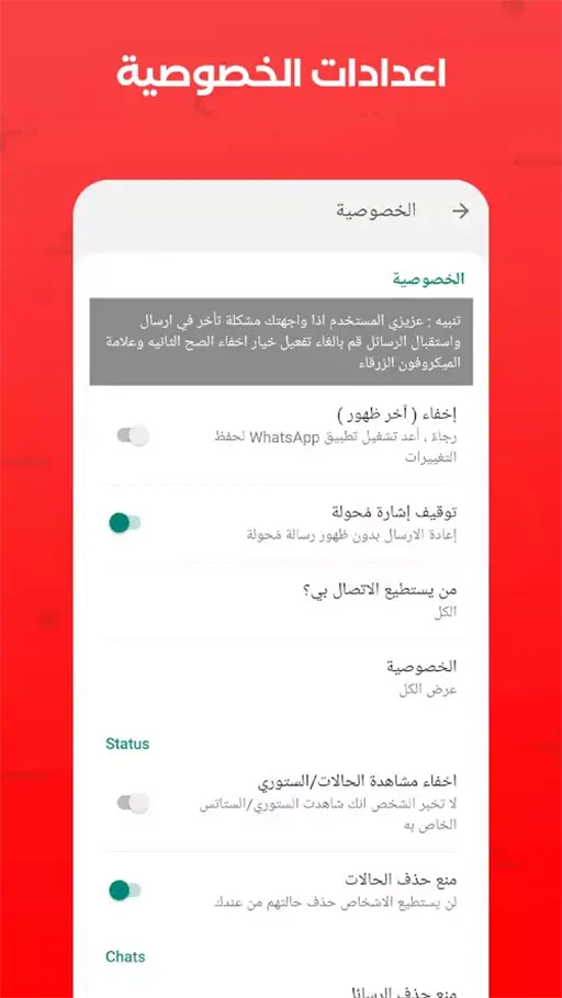 إعدادات الدردشة في واتس اب عمر احمر الاصدار الاخير مهكر
