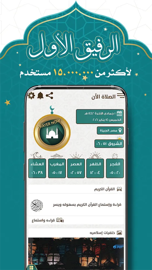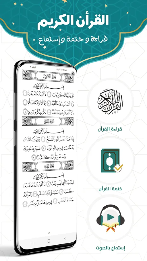 - ستجد بعد ذلك علامة القرآن الكريم وهي التي سنتناولها في الفقرة التالية من مقالنا باستفاضة وذلك لتتمكن من قراءة القرآن أو الاستماع إليه إذا كنت ترغب في ذلك، وفي أسفل الخيارات السابقة ستجد خيار (حلقة ذكر) وهو الذي يعرض حلقة دينية وعلمية يمكنك الاستماع إليها والاتعاظ منها، بجانبها هٌناك خيار (اتجاه القبلة) وإذا كنت لا تعرِف اتجاه القبلة الخاصة بك عليك الضغط عليها وستفتح لك صفحة بها البوصلة وسيتم تحديد الاتجاه من خلالها وفقا لموقعك الجغرافي الحالي ولكن لتحديد القبلة عليك الاتصال بالإنترنت.