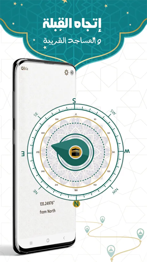 - تحديد اتجاه القبلة : من الخصائص المهمة والمميزة للغاية الموجودة في برنامجنا هذا هو خاصية تحديد اتجاه القبلة، وفي الواقع فهي خاصية مهمة أيضًا وتساعد المستخدم على معرفة اتجاه الصلاة الصحيح مهما كان موقع المستخدم، حيث يطلب برنامج براير ناو Apk مهكر إذن الوصول إلى الموقع ومن ثم يتم فتحه على بوصلة داخلية تشير لاتجاه القبلة الصحيح بالنسبة لمكان المستخدم.