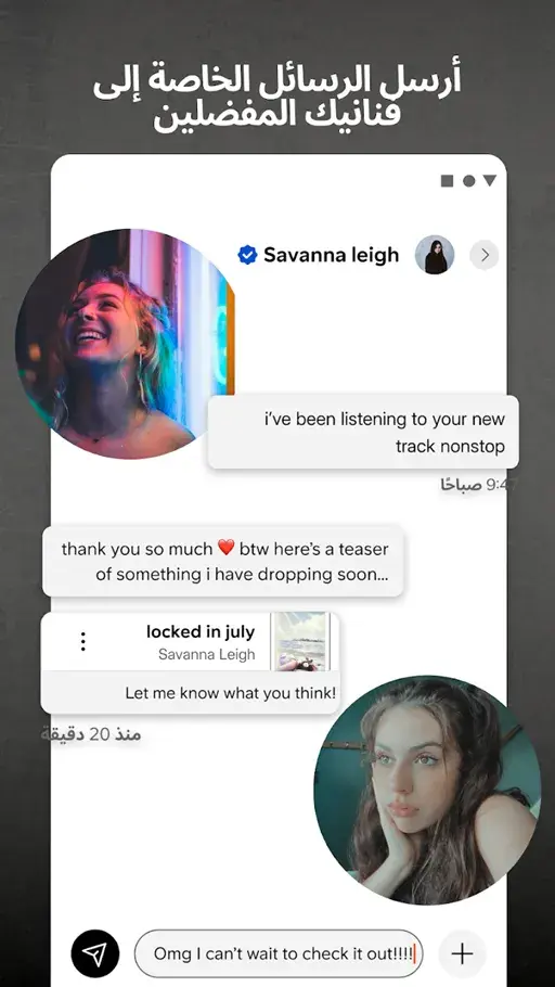 - المتابعة والتفاعل : إذا أعجيك ذوق شخص ما فى الموسيقى أو الأغانى أو مغنى أو فرقة يمكنك متابعتها ليصل إليك فى الصفحة الرئيسية ما يقومون بنشره ويمكنك أيضاً التفاعل معه بالضغط على أعجبنى عن طريق رمز القلب أسفل المشغل أو كتابة تعليق حول المقطع الصوتى الذى تستمع إليه.