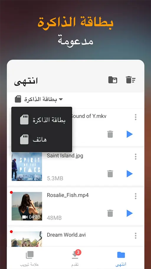 - القسم الأخير هو ( انتهى ) ويوجد به عمليات التنزيل المنتهية والناجحة وفي البداية لن تجد شيء في هذه الأقسام ولكن بعد مدة ستجد جميع المقاطع بها.