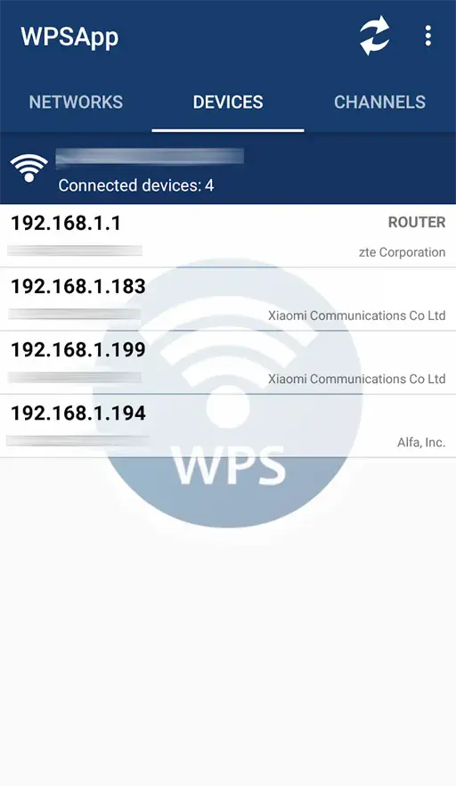 عرض الأجهزة المتصلة بالشبكة في برنامج WpsApp Pro مهكر