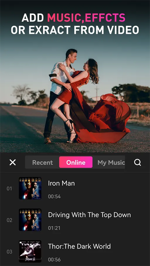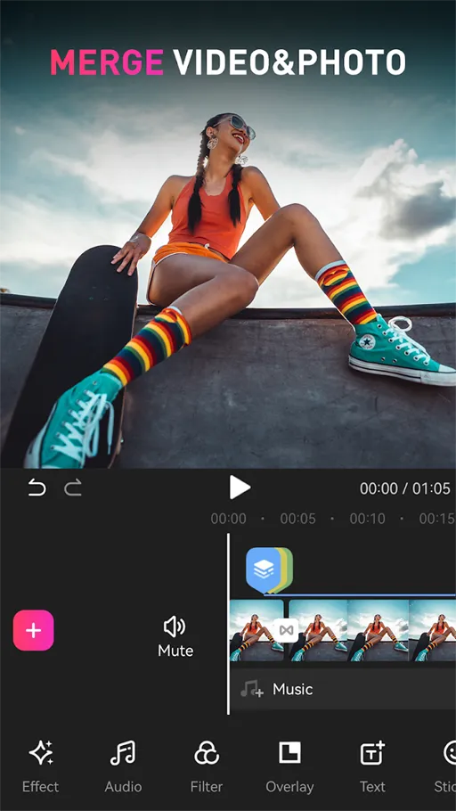 - الموسيقى والنصوص : خاصية الإضافة من الخصائص الأساسية, وهٌنا نتحدث عن إضافة الموسيقى والنصوص, بالفعل يمكنك إدراج أي موسيقى من هاتفك أو أي نص تريده ومتاح التحكم فيهم من حيث وقت الظهور والمدة وهكذا.