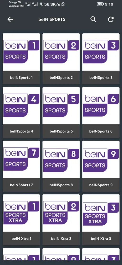 - القنوات الرياضية : من أبرز مزايا تطبيق الاحمد الأصلي لنظام الأندرويد من Google Play هي Elahmad TV Mobile BEIN Sport القنوات الرياضية المتاح مشاهدة بث مباشر لها للاستمتاع بمشاهدة مباريات كرة القدم العالمية والمحلية بجودة عالية.