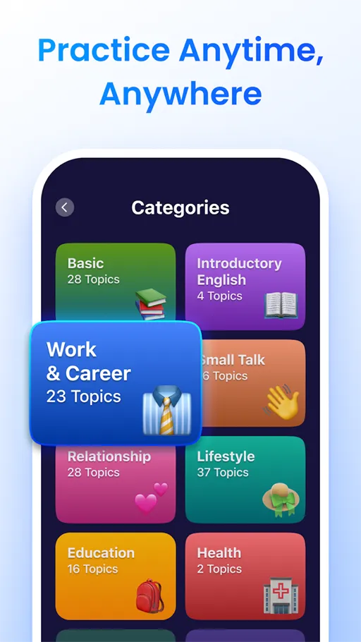 - الإختبارات : لأن المطور يحرص على تقديم خدمة تعلم مميزة قام بتوفير مجموعة من الإختبارات التي تستطيع من خلالها معرفة مدى استفادتك من عملية التعلم التي استمتعت بها في تطبيق Elsa Speak English Apk مهكر.