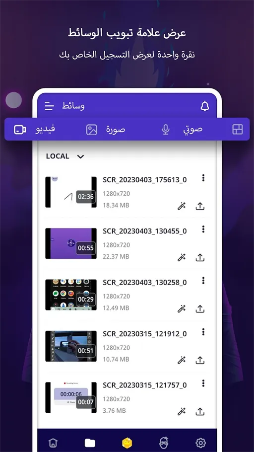 مكتبة التسجيلات والحفظ في تطبيق Super Screen Recorder Apk Mod مهكر