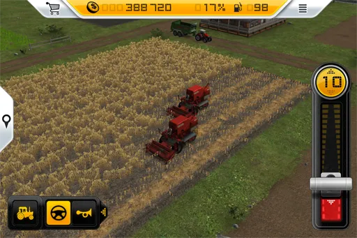وبالطبع الأمر إختياري فـ من الممكن تنفيذ المهمات بنفسك إن كانت متعتك في ذلك الأمر, ولكن النقل والقيادة يجب القيام بهم حيث لن يستطيع المساعد في تنفيذهم, وأعلى الصفحة تظهر بعض تفاصيل الآلات مثل مستوى الوقود ومستوى ملئ الخزان في حالة نقل المحاصيل.