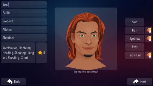 البدء وإختيار تفاصيل الشخصية بعد تحميل لعبة Football Superstar 2 مهكرة مجانا