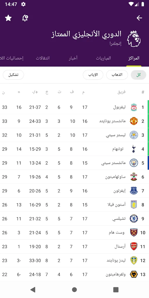 - جدول الترتيب : دانلود فوت موب اخر اصدار يقدم لك أيضا خدمة جدول الترتيب أي يمكنك معرفة جدول الترتيب الخاص بالبطولات, بالتالي تستطيع معرفة الترتيب الخاص بفريقك المفضل في البطولة المشاركة بها.