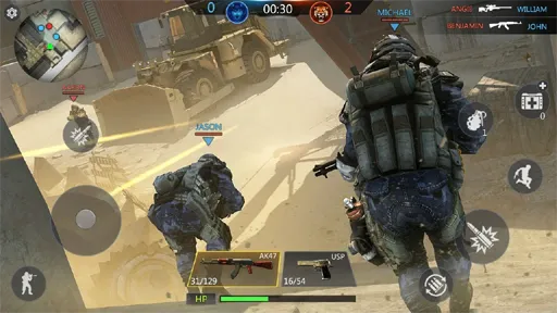 - 8 نظرة على عناصر التحكم بعد تحميل لعبة FPS Online Strike Mod Apk مهكرة للاندرويد