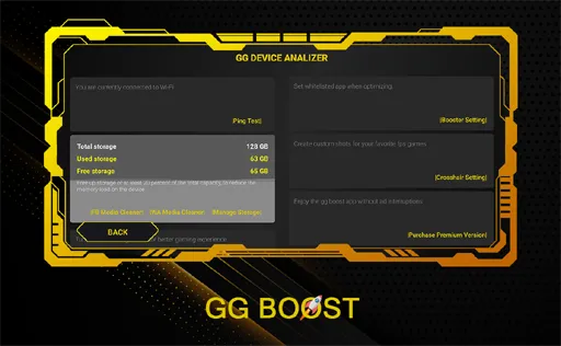 من المزايا المُتاح لك الاستمتاع بها بعد تحميل Game Turbo آخر إصدار من ميديا فاير هو أن يتم عرض لك جميع المعلومات التابعة للهاتف وبالتالي تتمكن من معرفة الموارد التي تتوفر به, أي تستطيع معرفة إذا كان الهاتف مؤهل لتشغيل الألعاب عليه أم لا, والبيانات التي يتم توفيرها لك بعد تنزيل تطبيق جيم تيربو Game Turbo مهكر مثل : مساحة التخزين المتوفرة حيث أن تلاحظ في الجانب الأيسر أعلى الشاشة ظهور نسبة توضح لك نسبة مساحة التخزين الخالية أو الغير مستخدمة في الهاتف.