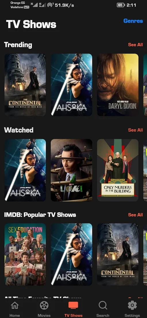 - لا يتوقف على عرض الأفلام فقط : يعتقد بعض الأشخاص أن HDO Box Pro للاندرويد مهكر يقوم بعرض الافلام فقط, لكن الحقيقة أن التطبيق يوجد به ايضا مسلسلات عالمية وشهيرة والعديد من البرامج التلفزيونية, حيث من الممكن الدخول الى التطبيق وتحديد نوع المحتوى الذي تريده بكل سهولة, كما تجد خيار خاص بالبحث وذلك لكي يكون من السهل العثور على المحتوى الذي تريده بسهولة, حيث انك بمجرد كتابة اسم المحتوى داخل شريط البحث لتظهر أمامك جميع النتائج المشابهة لها.