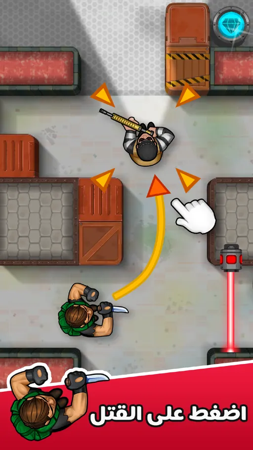 بعد تنزيل لعبة Hunter Assassin مهكرة ستجد أن الساحة التي تدور بها المعركة تحتوي على العديد من الحواجز والأبواب والأشجار وبالتالي يجب عليك استخدام هذه العناصر بأفضل صورة ممكنة من أجل تحقيق المهمة المحددة لأن تحتاج للإختباء خلف هذه الحواجز بحيث لا يراك أحد الأعداء, يجب التذكير أن كل عدو يملك مصباح يدوي وهذا الضوء يساعدهم على كشف الأعداء المتواجدين بالمكان وبالتالي يجب أن لا تظهر في المنطقة التي يتم تسليط عليها ضوء المصباح لكي لا يتم اكتشاف وجود بالمكان ومطاردتك.