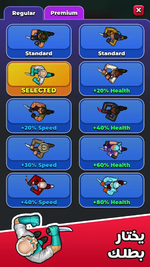 - كثرة الشخصيات وميزة الترقية في لعبة هانتر اساسين مهكرة Hunter Assassin Apk Mod