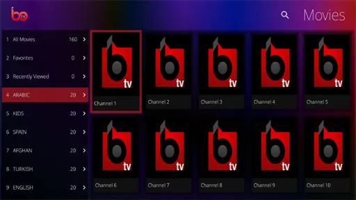 من الخدمات التي يقوم المستخدمين بـ تحميل برنامج IBO Player مهكر لأجل الاستمتاع بها هى خدمة مشاهدة القنوات حيث يحتوي تطبيق IBO Player IPTV Android مهكر على مجموعة قنوات عديدة من فئات متنوعة, بالتالي يمكنك الإنتقال القنوات والقيام بتحديد الفئة المرادة لكي تظهر أمامك جميع القنوات التي تنتمي لتلك الفئة وبالتالي تتمكن من تشغيل أي من قنوات هذه الفئة بكل سهولة.