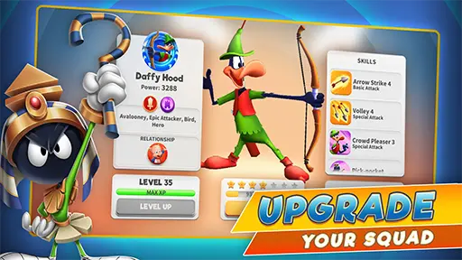 بعد تحميل لعبة Looney Tunes World of Mayhem مهكرة للاندرويد سيتوفر نظام ترقية متكامل لجميع الشخصيات، وعملية التطوير هنا ليست جانبية بل هي قلب نظام التقدم الأساسي، ولن يتمكن اللاعب من الاستمرار في المراحل الصعبة دون الاستثمار الدائم في رفع مستوى شخصياته وتعزيز قدراتها القتالية والدفاعية.