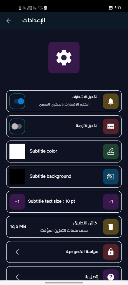 المميز في “تطبيق ماسبيرو Masspero Tv” لمشاهدة الأفلام والمسلسلات أيضا أنه يوفر لك مجموعة إعدادات خاصة بالترجمة تستطيع بواسطتها جعل الترجمة تظهر بالصورة المناسبة لك, حيث يمكنك التحكم في حجم الخط الخاص بالترجمة بالإضافة لإمكانية تحديد درجة اللون الخاصة بهذا النص من بين درجات ألوان ضخمة.