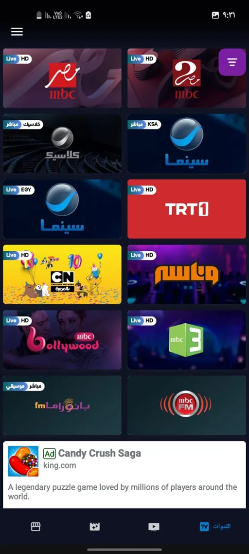 الجدير بالذكر أن هذا القسم يتميز بالتصنيف أي يمكنك تصنيف جميع القنوات التي تظهر أمامك حسب الفئة التي تقوم بتحديدها, الفئات التي يمكن الاستمتاع بها في برنامج ماسبيرو Masspero Tv Apk Mod مهكر مثل : القنوات الرياضية حيث تتوفر مجموعة ضخمة من القنوات الرياضية المتنوعة التي بواسطتها تستطيع مشاهدة المباريات المباشرة والبرامج التحليلية الرياضية, أيضا تتوفر مجموعة قنوات متنوعة تتمثل في قنوات MBC أي تستطيع متابعة أي عرض أو بث خاص بسلسلة قنوات MBC, تتوفر أيضا مجموعة قنوات تابعة لفئة الأخبار والمميز بهذا القسم أيضا أنك تستطيع القيام بعمل قائمة تشغيل خاصة بها أي تقوم بإنشاء قائمة خاصة بالقنوات والبث والقيام بإضافة بها جميع القنوات المرادة لكي لا تحتاج للبحث عنها فيما بعد للاستمتاع بها في التطبيق.