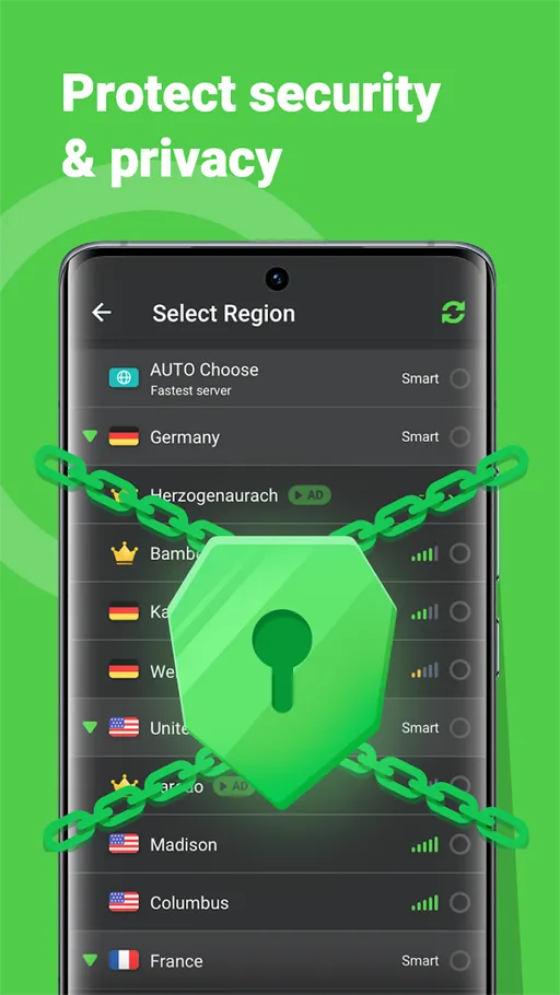 والميزة الحصرية التي ذكرناها أي الإتصال السريع أو الذكي سوف توفر عليك عملية تحديد الخادم المناسب لأن تطبيق Melon VPN مهكر للاندرويد يقوم بتوصيل الهاتف تلقائياً بالخادم الأقوي حسب عنوان الـ IP الخاص بهاتفك, ومن الأمور المتاحة أن برنامج Melon VPN مهكر يترك خيار تحديد السيرفر للمستخدم فإن كان إختيار التطبيق لا يناسب الشخص يمكن بكل سهولة الدخول وتحديد السيرفر الذي يناسبه ويعرض قوة وإشارة الخوادم لتسهل عملية الإختيار.
