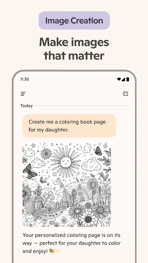 علاوة على الخدمات التي يقدمها تطبيق Copilot مهكر اخر اصدار يمكنك الاستمتاع بخدمة إنشاء الصور, حيث توفر عدد كبير من المستخدمين الذين يحتاجون لصور محددة ولا يتمكنون من العثور على تلك الصور في التطبيقات والمواقع الإجتماعية, من خلال هذه الخدمة تستطيع الحصول على جميع الصور التي تريدها بدقة عالية, حيث أن كل ما تحتاج القيام به هو وصف الخصائص المراد توفيرها بالصورة لكي تعمل التقنيات التابعة للتطبيق على إنشاء لك هذه الصورة بالمواصفات التي قمت بتحديدها بدقة عالية, عليك العلم أن المدة التي يستغرقها التطبيق في إنشاء هذه الصور تكون أكبر من مدة الرد على استفساراتك.