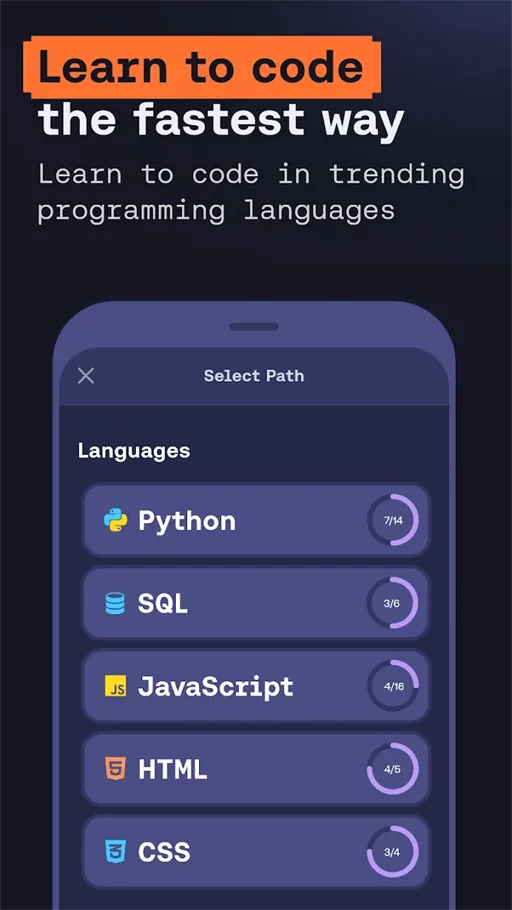 - دعم لغات البرمجة : من الأمور المميزة بعد تحميل التطبيق أنه لا يوفر دورات تعليمية محدودة حيث أنه يعمل على تقديم مجموعة متنوعة من الدورات في لغات البرمجة الشائعة مثل ( Python ، JavaScript ، HTML ، CSS )بالإضافة إلى أشياء أخرى مهمة مثل تطوير التطبيقات والويب.