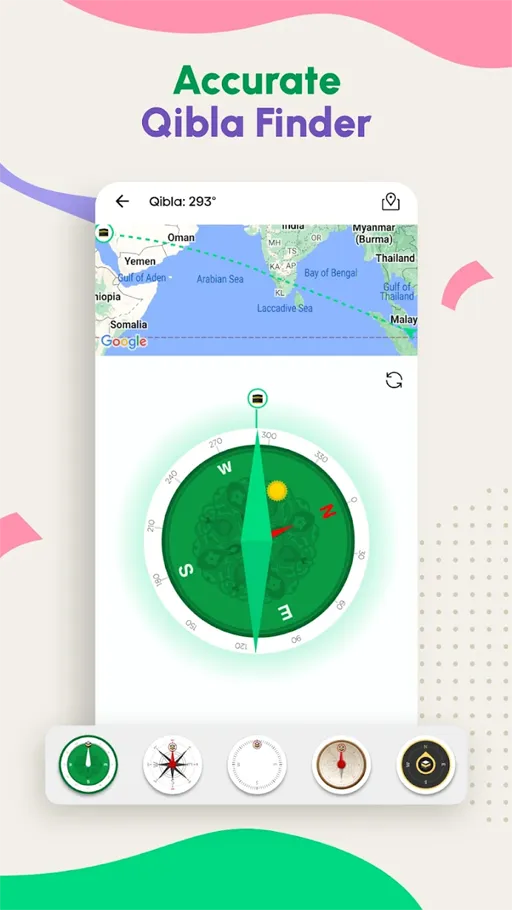 في العديد من الأحيان قد يكون المستخدم بمكان لا يتوفر به مساجد يمكن آداء بها الصلوات ولا يعلم أي شئ عن الإتجاهات الخاصة بهذا المكان وبالتالي يواجه مشكلة في تحديد الإتجاه الصحيح للصلاة وقد يضطر للصلاة في اتجاه عشوائي, لكن اليوم ومع تطبيق Muslim Pro Apk لن تقوم مواجهة تلك المشكلة مرة أخرى وذلك بسبب إحتواء التطبيق على خدمة تحديد الاتجاه التي تعمل على مساعدتك للصلاة في الإتجاه الصحيح, وذلك الخدمة يتم تقديمها لك بواسطة بوصلة التي تستطيع التحكم في إتجاه السهم الموجود بتلك البوصلة بواسطة حركة الهاتف بصورة أفقية.