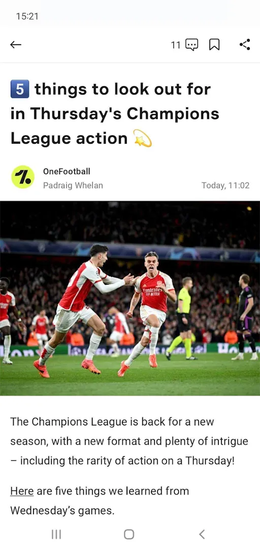 المميز في تطبيق OneFootball Football News Mod Apk أنه يوفر معلومات عن المباريات التي تظهر بالجدول وبالتالي يمكنك تحديد المباراة المرادة والإطلاع على المعلومات التابعة له والتي تتمثل في تفاصيل اللقاء مثل البطولة التابع لها المباراة والحكم الذي سيُدير المباراة والملعب الذي تُلعب عليه المباراة وموعد إنطلاقها.