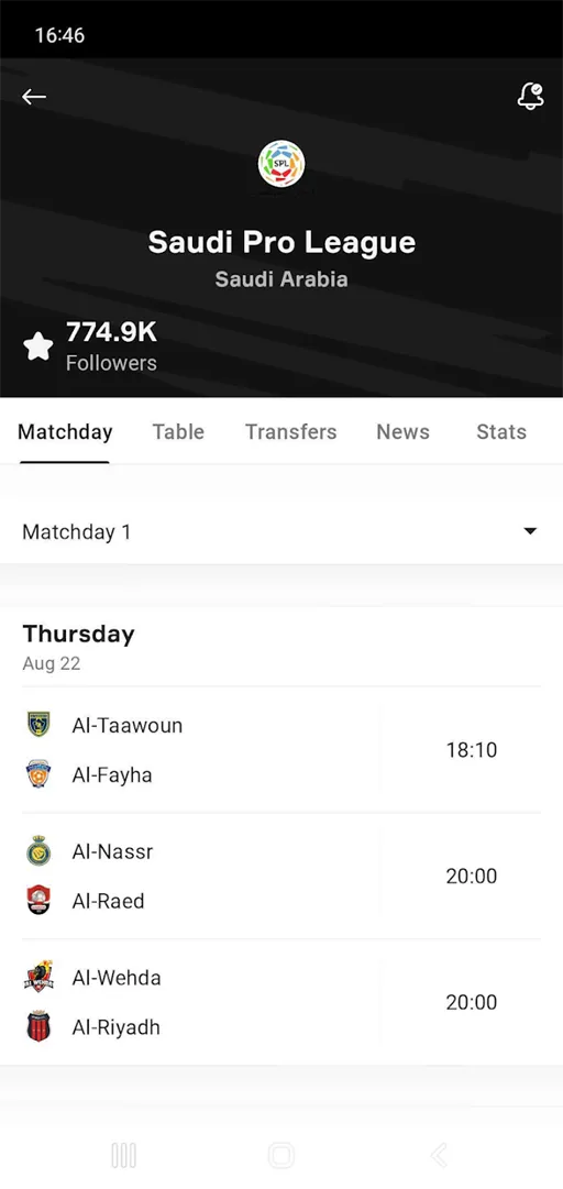 • 3 جدول المباريات وعرض التفاصيل في برنامج وان فوتبول OneFootball مهكر